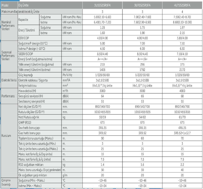 Dış Ünite Teknik Kapasiteleri